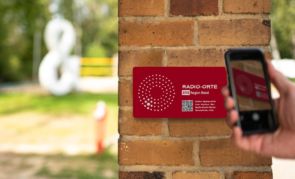 Sehen Sie in unserem Video, wie sich die «Radio-Orte» präsentieren werden. Hier auch mit den für die Lancierung geplanten Stelen. Diese werden nach der Einführungszeit wieder zurückgebaut, die Plaketten hingegen verbleiben an den Standorten. Die «Radio-Orte» sind ein dauerhaftes Projekt, das über die Jahre erweitert oder modifiziert werden kann.