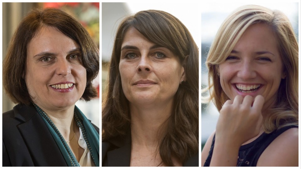 Regierungsrätin Elisabeth Ackermann (Grüne Basel) und die beiden Herausforderinnen Stephanie Eymann (LDP) und Esther Keller (GLP) im Gespräch vor den Basler Regierungsratswahlen 2020.