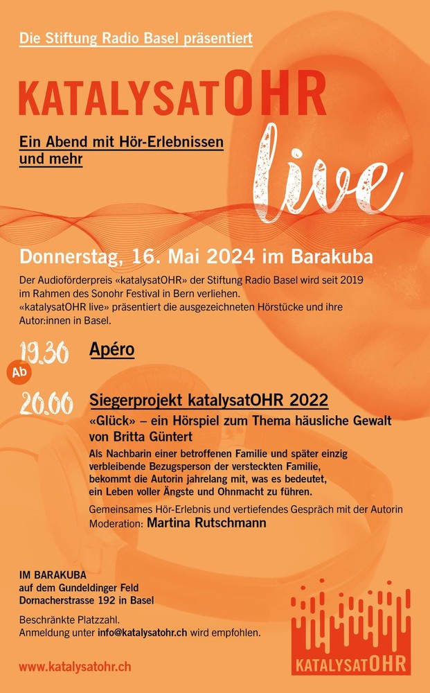 Im Februar noch am SONOHR in Bern, präsentieren wir Britta Günterts Hörspiel «Glück» am 16. Mai im Barakuba in Basel. Wir freuen uns über Euer Kommen!